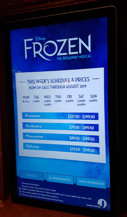 로터리 당첨으로 뮤지컬 Frozen을 저렴한 가격에 볼 수 있었습니다.