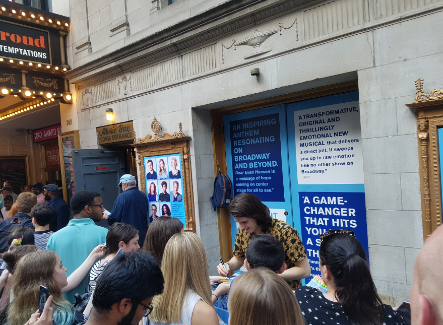 뮤지컬이 끝나고 허전하지만 좋은 이야기를 봐서 기분 좋아진 상태로 나오면, 한쪽에 사람들이 줄 선채로 누군가를 기다리고 있는 모습을 볼 수 있습니다. 그곳에서 계속 기다리고 있으면 배우들이 나와서 사람들이 내미는 PLAY BILL 종이에 싸인을 해줍니다. 인기가 많은 뮤지컬인 만큼 기다리는 팬들도 많네요.