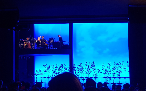 뮤지컬을 연달아 보다보니 밴드의 위치도 제각각인걸 눈여겨 보는것도 재밌었습니다. 이번엔 무대보다 높은곳에 밴드가 있습니다. 무대 뒤편으론 SNS를 연상시키는 디지털 화면들이 산만하게 배열돼있습니다. 뭔가 SF적인 뮤지컬이 되지 않을까하는 기대도 해봅니다만 미리 검색해보고 간 바로는 SF극은 아닙니다.(일상이 SNS로 점철된 요즘 현실이 이미 SF스러워졌다고 표현할 수도 있겠네요.)